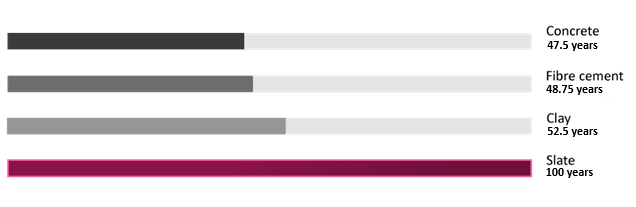 According to manufacturers’ own data, natural slate lasts at least twice as long as other roofing materials.